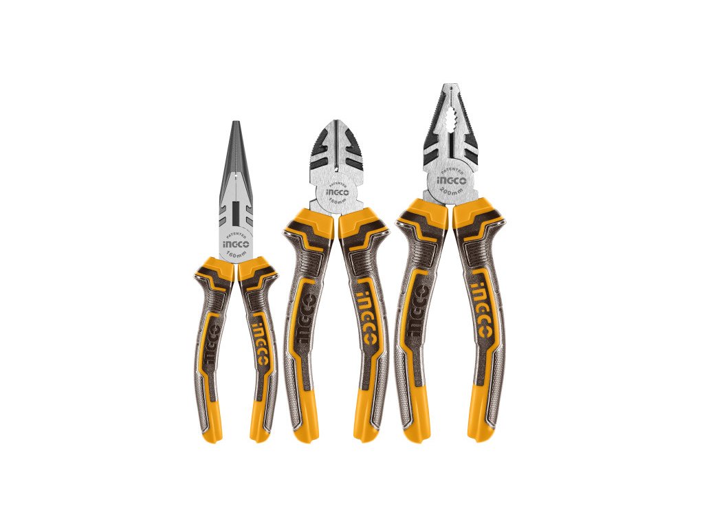 Szállítási terjedelem: 1 db kombinált fogó, 1 db hosszúcsőrű fogó, 1 db oldalcsípő fogó, Bliszterben
