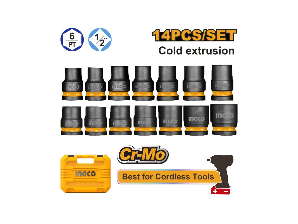 INGCO Sada nástrčných kľúčov pre stroj 10 kusov 1/2 10-27 mm CrMo