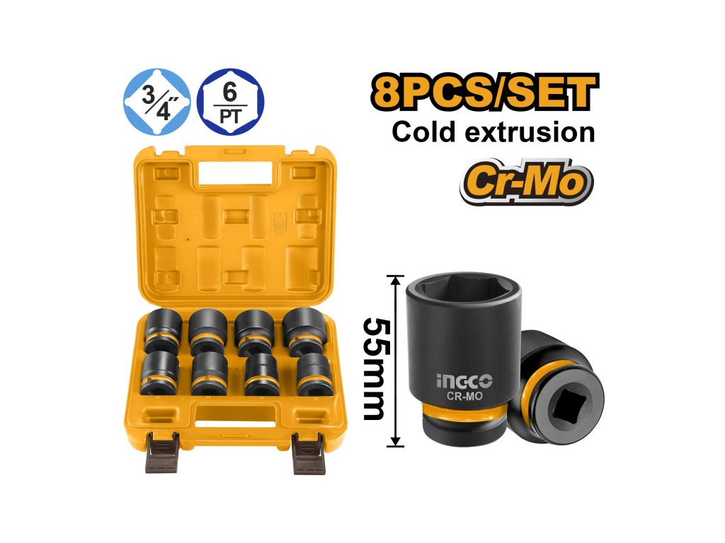 INGCO Sada nástrčných kľúčov pre stroj 8 kusov 3/4 26-38 mm CrMo