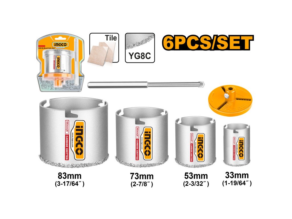 INGCO Diamantová sada dierovacích píl 6 dielov 33-83 mm