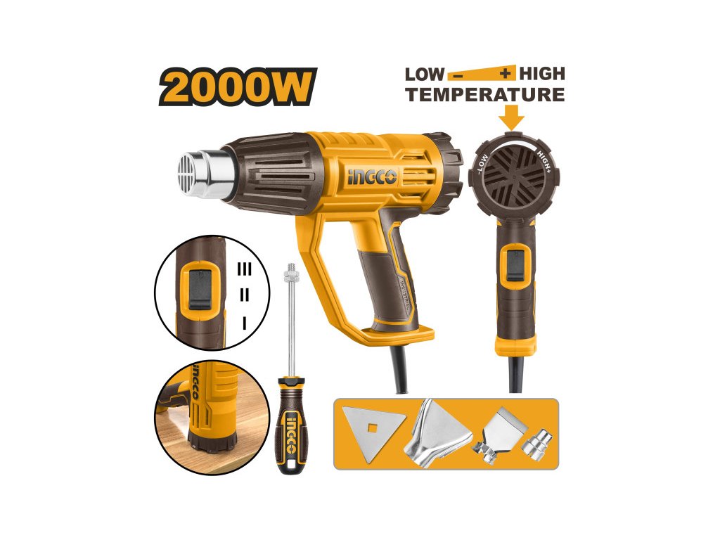 INGCO Hőlégfúvó 550°C 2000 W + tartozékok