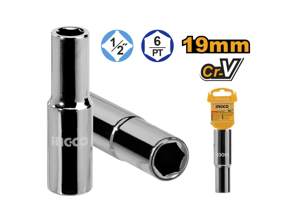 INGCO Hosszú dugókulcs 1/2" 19 mm CrV