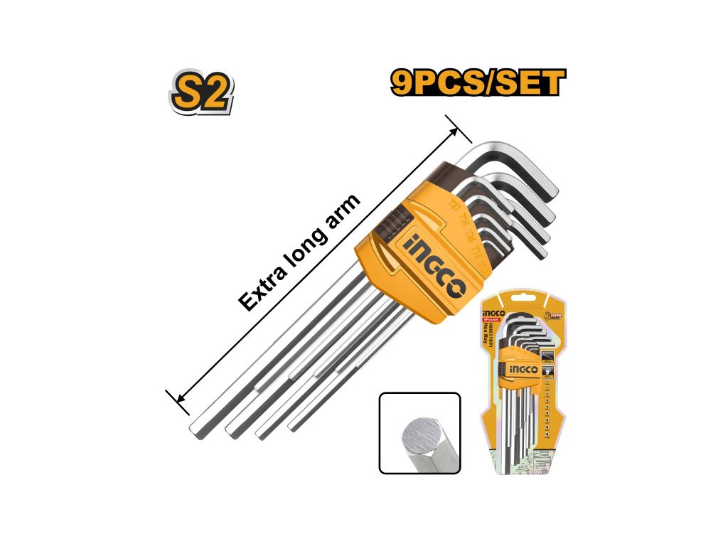 INGCO Sada dlhých imbusových kľúčov 9 dielov 1,5-10 mm S2