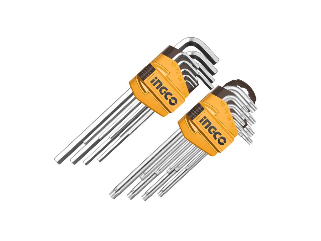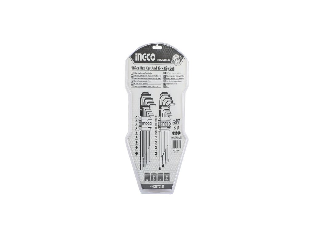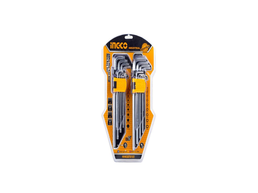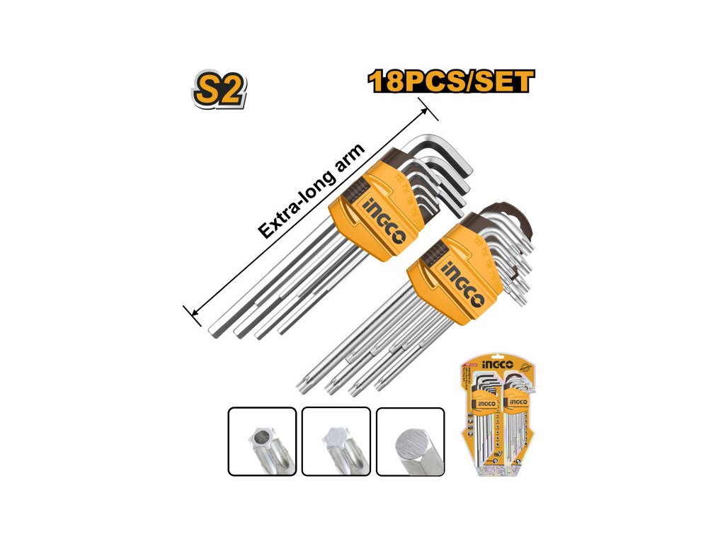 INGCO Sada dlhých torxových a imbusových kľúčov 18 kusov