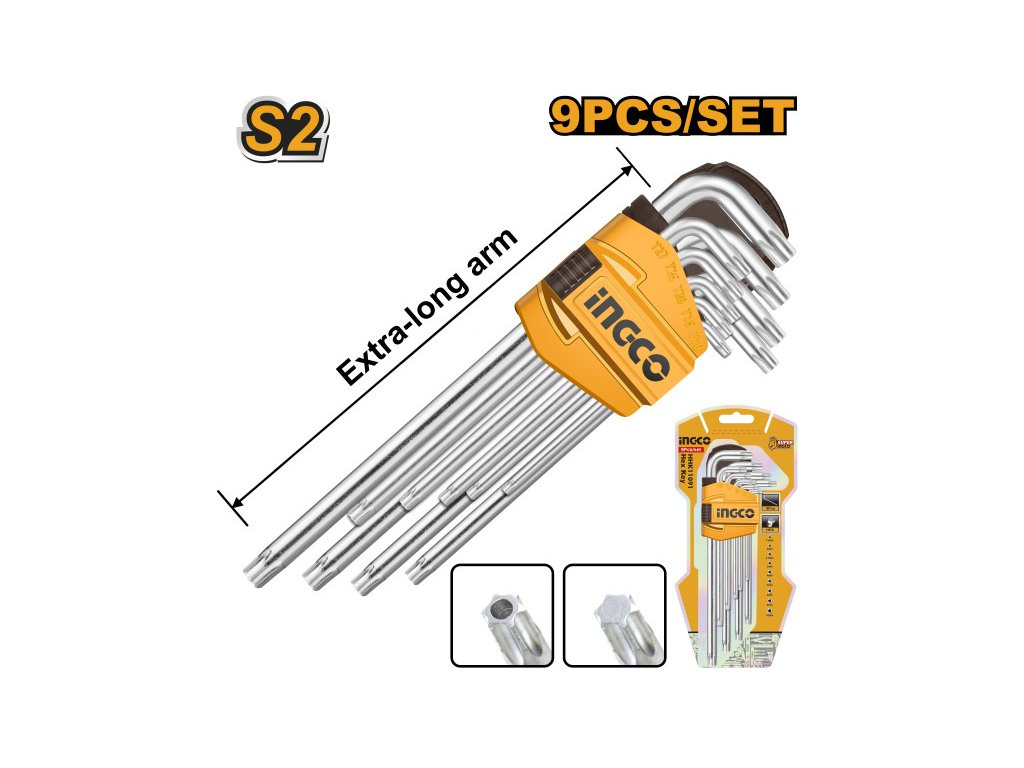 INGCO Sada dlhých torx kľúčov 9 dielov T10-T50 S2
