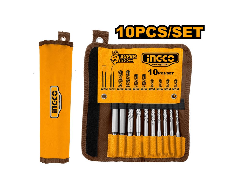 INGCO Sada vrtákov a sekáčov 10 dielov SDS-Plus