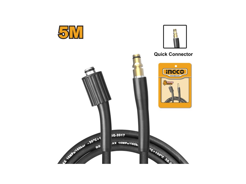 5 m hosszú, gyorscsatlakozós nagynyomású tömlő WHP1A11/WHP3A12/WHP3A14/WHP3A18 magasnyomású mosókhoz, szalagos csomagolásban