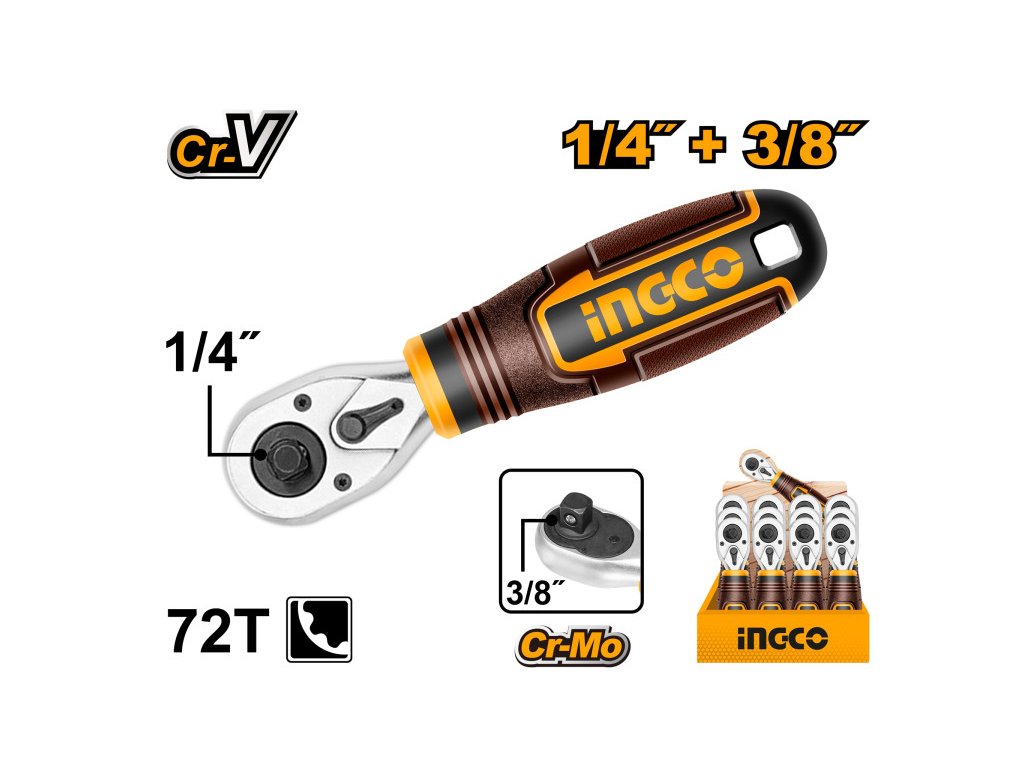 INGCO Mini racsnis hajtószár 1/4"-3/8" 140 mm CrV CrMo