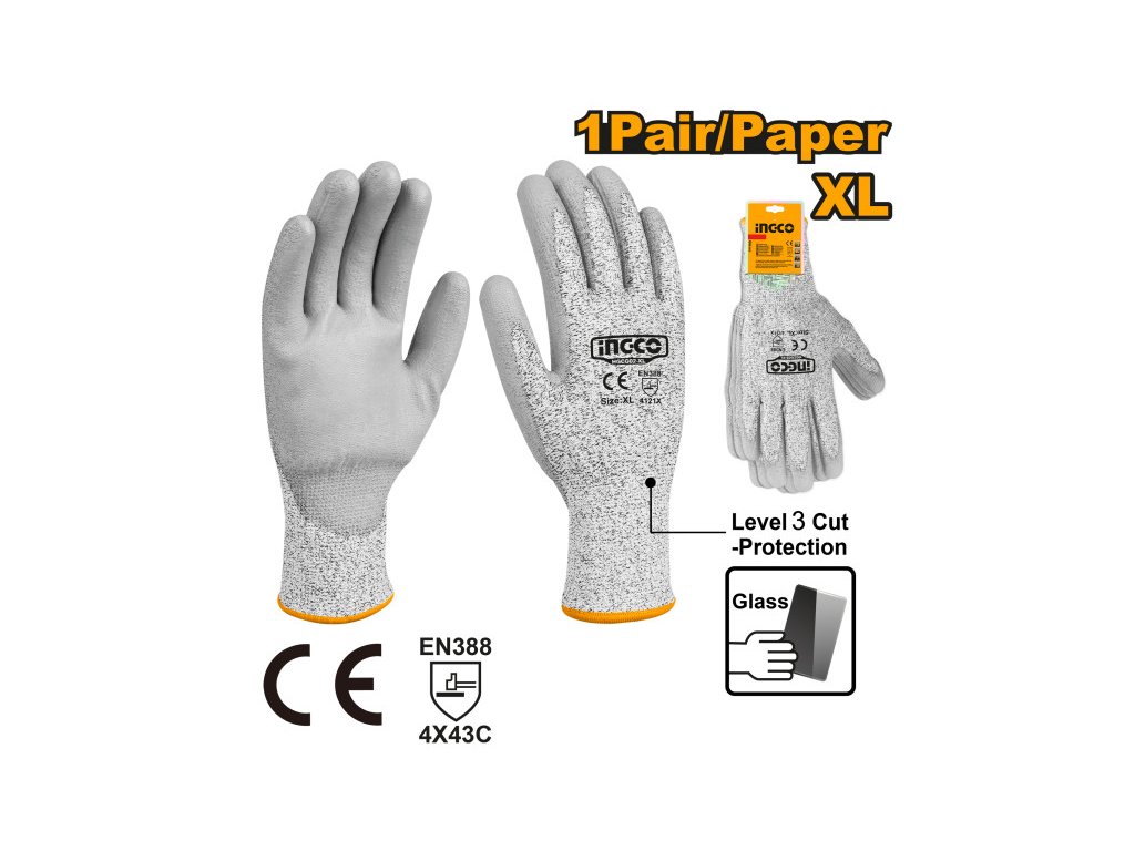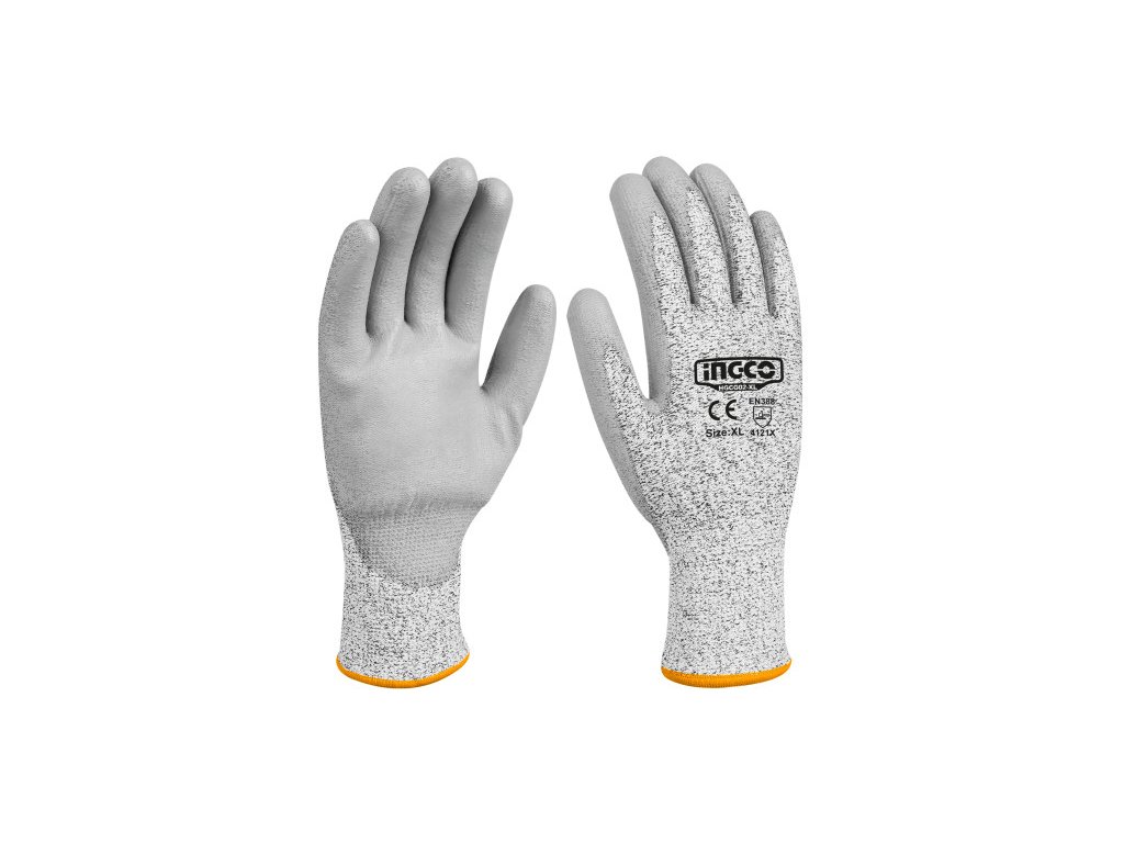 INGCO Ochranné rukavice XL rez odolné potiahnuté PU 3/C