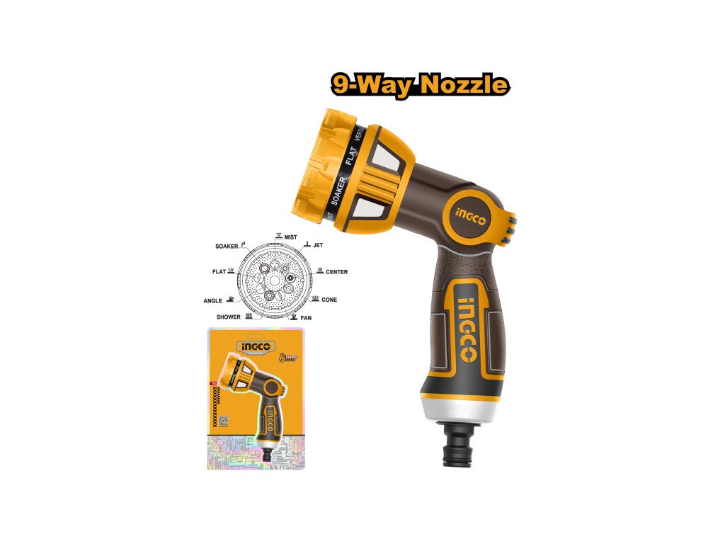 INGCO Polievacia pištoľ s 9-funkčnou kovovou vložkou
