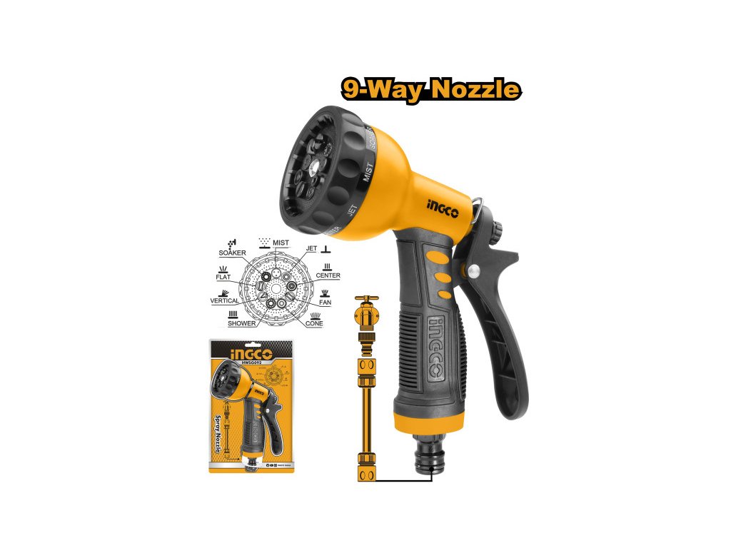 1. 9 féle víztípus beállítható vízsugár pisztoly