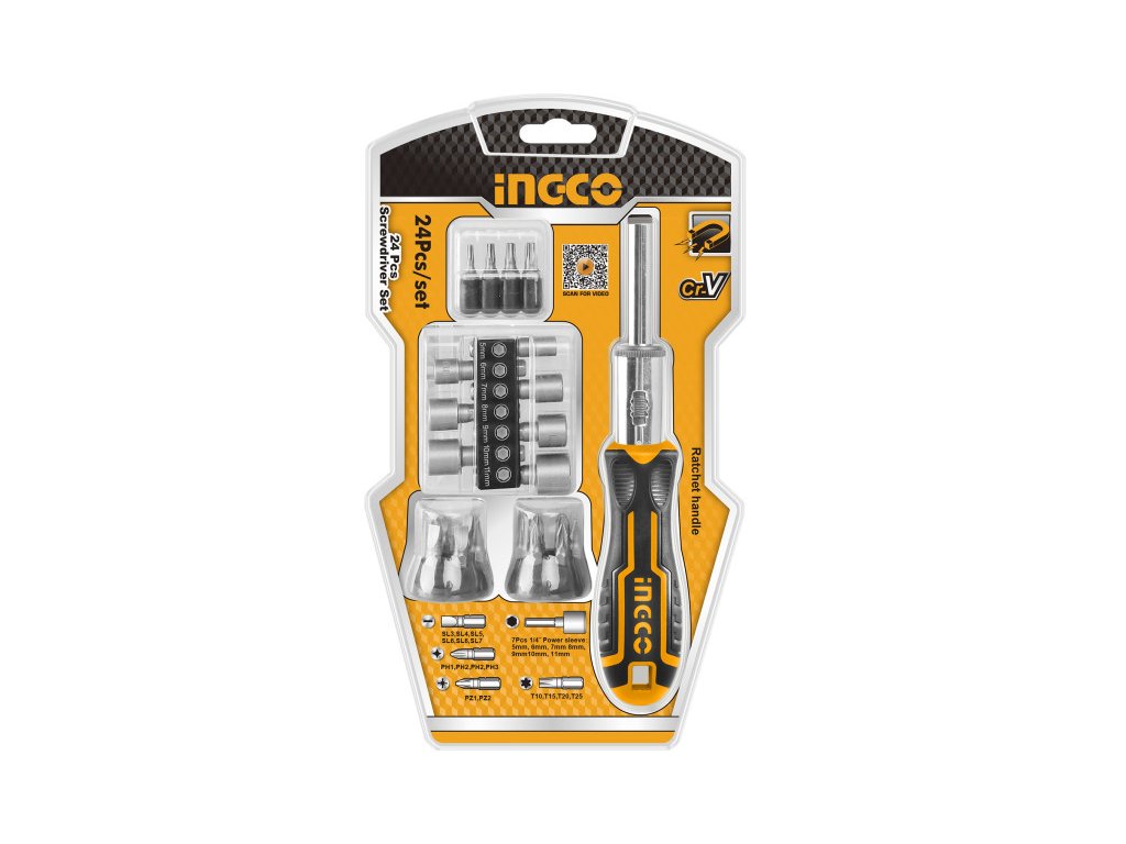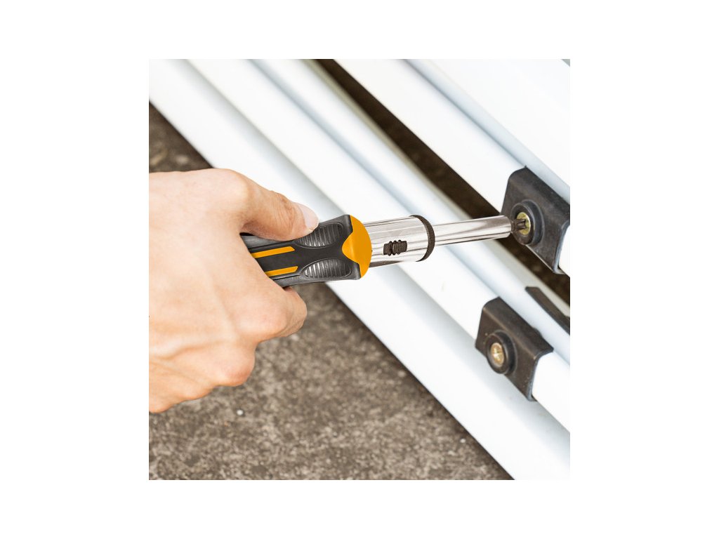 Szállítási terjedelem: 16 db bithegy, 7 db csavarbehajtó, 1 db racsnis csavarhúzó, Bliszterben