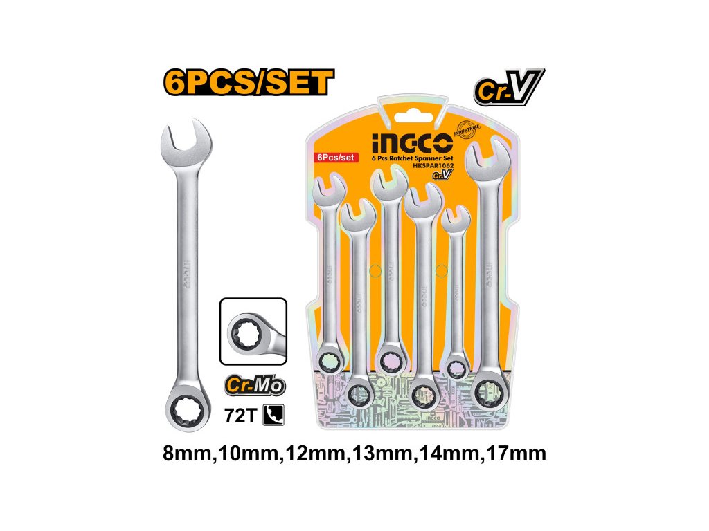 INGCO Sada račňových očkoplochých kľúčov 6 dielov 8-17 mm CrV