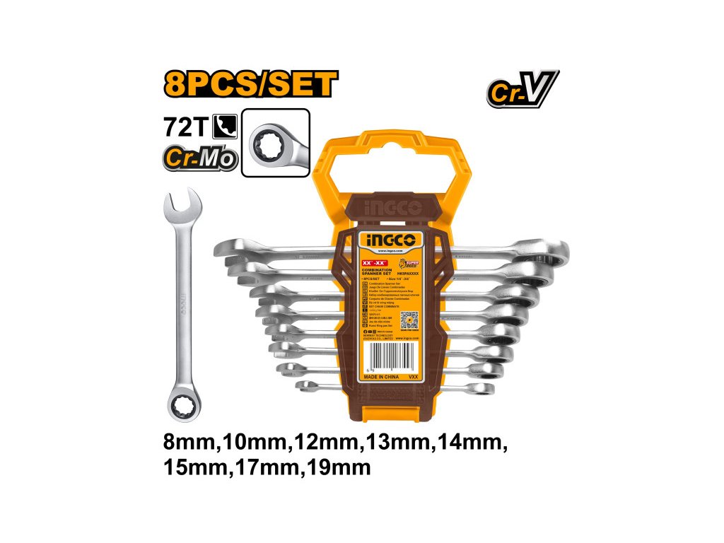INGCO Sada račňových očkoplochých kľúčov 8 dielov 8-19 mm CrV
