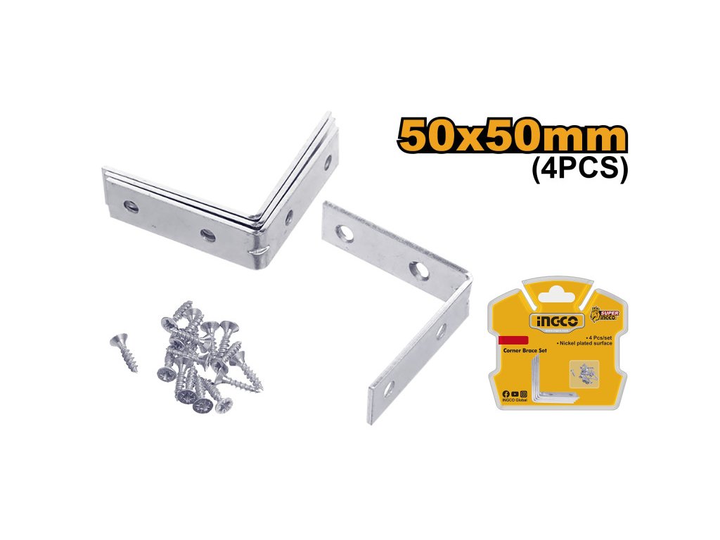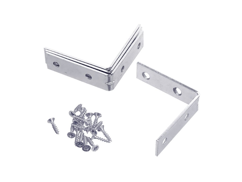 Veľkosť: 50 * 50 mm Hrúbka: 1,9 mm Poniklovaný povrch Rozsah dodávky: 4 rohové výstuhy, 16 spojovacích prvkov, v blistri