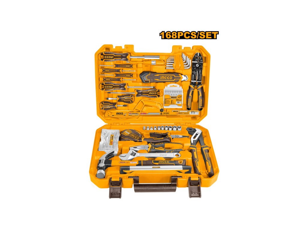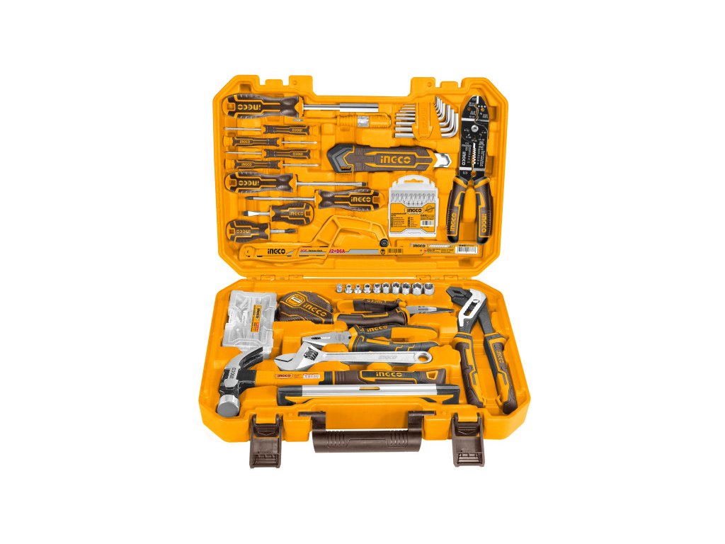 A készlet tartalma: 1 db ácskalapács, 1 db 7” kombinált fogó, 1 db 6” hosszúcsőrű fogó, 1 db 10” vízpumpa fogó, 1 db 8,5” vezetékcsupaszító, 1 db SL5.5x100 csavarhúzó, 1 db PH1x100 csavarhúzó, 2 db rövid csavarhúzó: PH238, SL6.538, 4 db precíziós csavarhúzó (SL2.050 mm, SL2.550 mm, PH00050 mm, PH0050 mm), 1 db fázisceruza (tesztfeszültség: 100-500 V AC), 1 db 8” állítható villáskulcs, 1 db 3 méteres acél mérőszalag, 1 db mini fémfűrész keret, 8 db imbuszkulcs: 1.5/2/2.5/3/4/5/5.5/6 mm, 1 db 1/4” 100 mm mágneses szár, 40 db csavarhúzó bit: T5-T6-T7-T8-T9-T10-T15-T20-T25-T30-PH1-PH2-PH2-PH3-PH4-PZ1-PZ2-PZ2-PZ3-PZ4-SL3-SL3-SL4-SL4-SL5-SL5.5-SL6-SL6.5-SL7-SL7-H2-H3-H3-H4-H4-H5-H5-H6-H7-H7, 1 db 18 mm letörhető pengés kés, 10 db kés pengék, 9 db 1/4” hatszögletű dugókulcs: 4 mm, 5 mm, 6 mm, 7 mm, 8 mm, 9 mm, 10 mm, 11 mm, 12 mm, 1 db 4-6 mm (25 mm) dugókulcs adapter, 1 db 225 mm-es vízmérték, 40 db csavar (22 db ST3.5, 10 db ST4, 8 db ST5), 40 db műanyag tipli (22 db 5 mm, 10 db 6 mm, 8 db 8 mm), kofferben