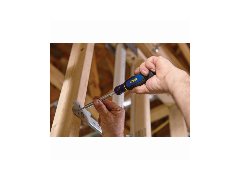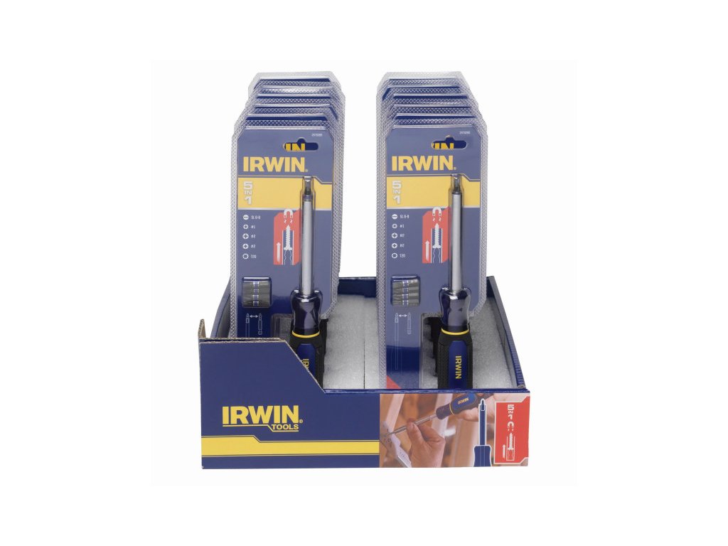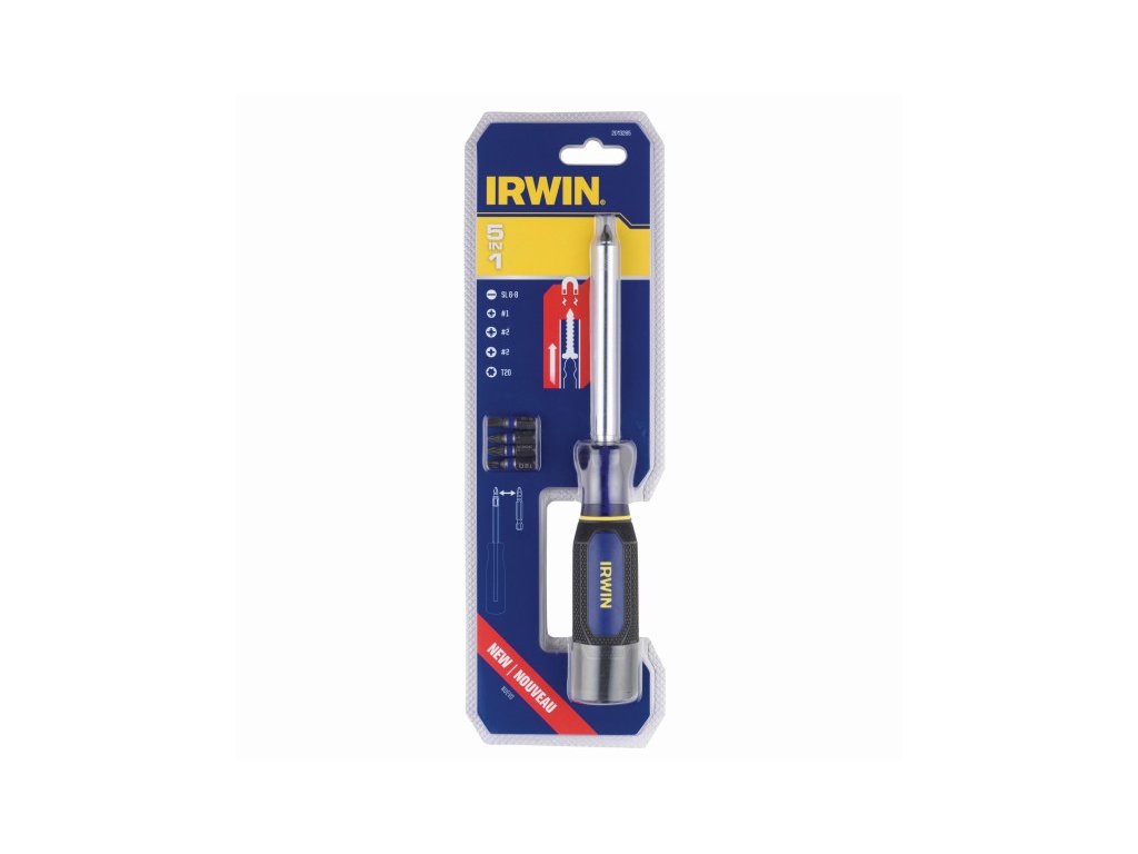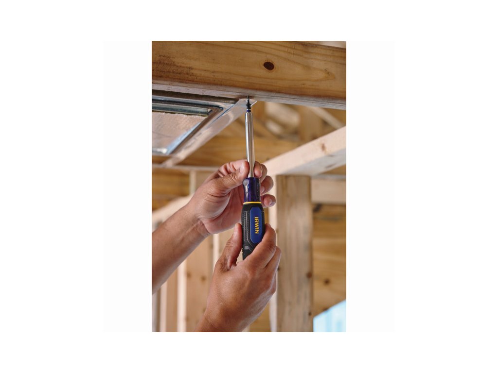Az IRWIN® 5 az 1-ben Multi Bit csavarhúzó vezetőhüvellyel, mágnesezett bittartóval és fémhüvellyel rendelkezik, amely előre csúszik, hogy a rögzítők egyenesen maradjanak, és kiküszöböljék a csavar ingadozását.