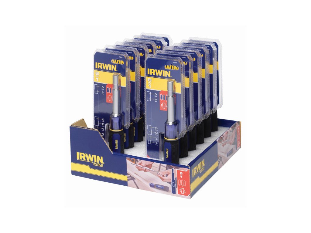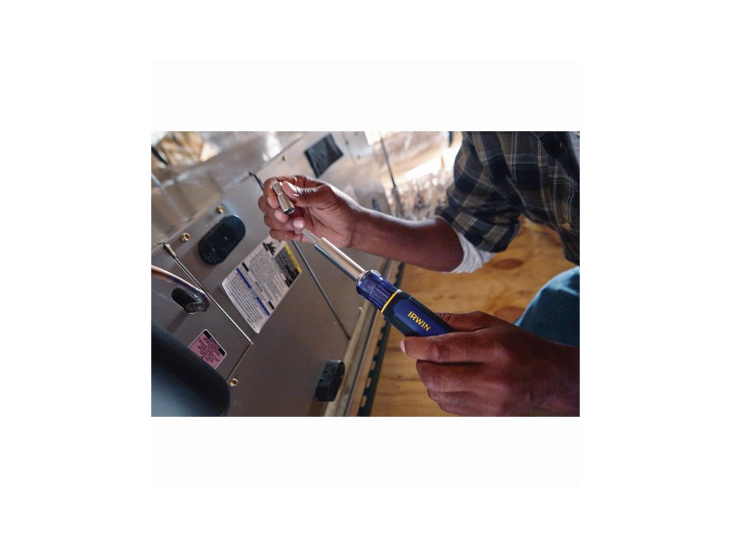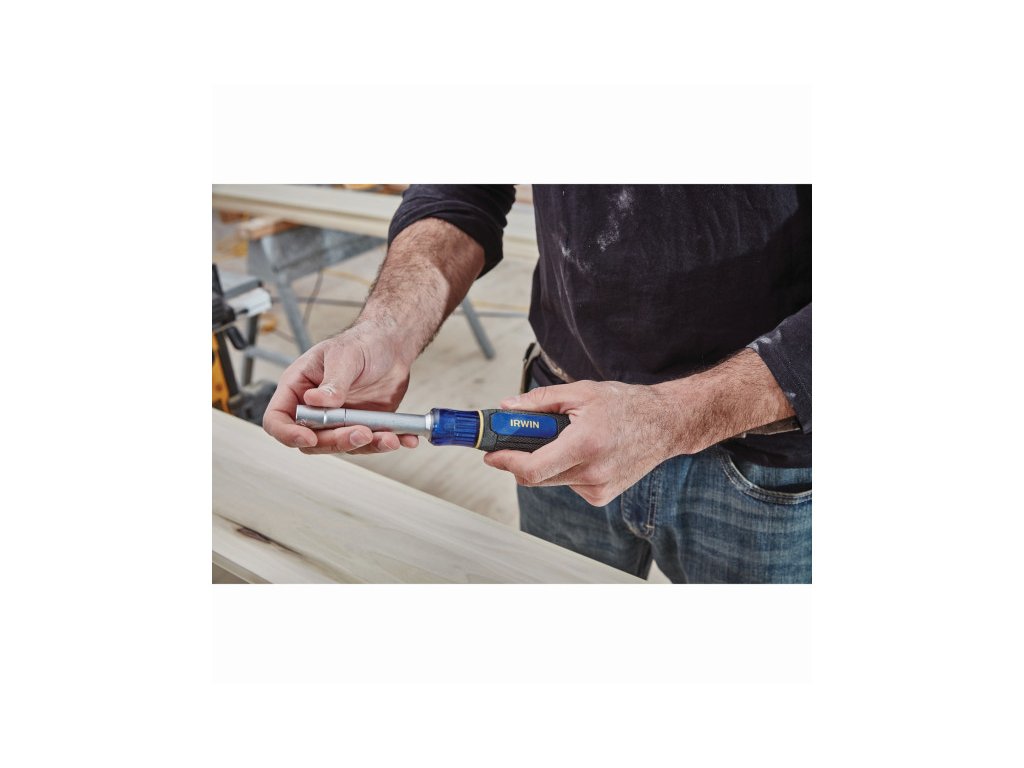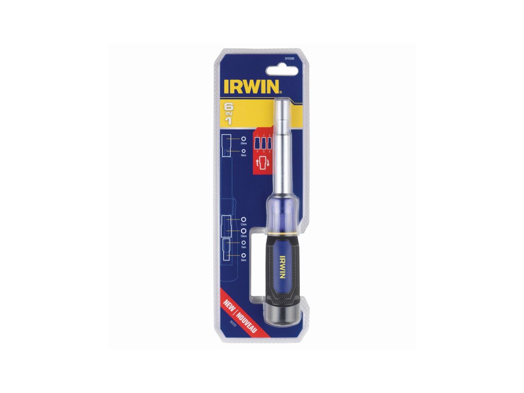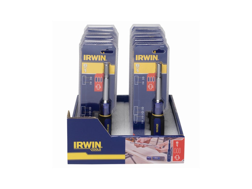 Az IRWIN® 6 az 1-ben csavarhúzó bithegy tartó növeli a munka kényelmét azáltal, hogy 6 méretet kombinál az anyák és csavarok egyetlen szerszámmal történő rögzítéséhez.