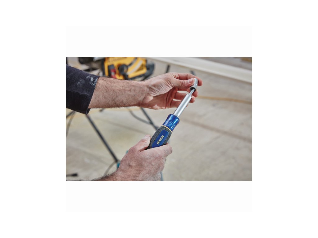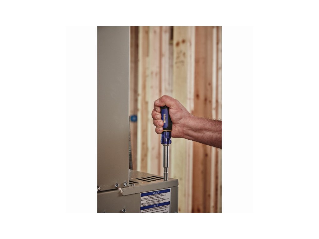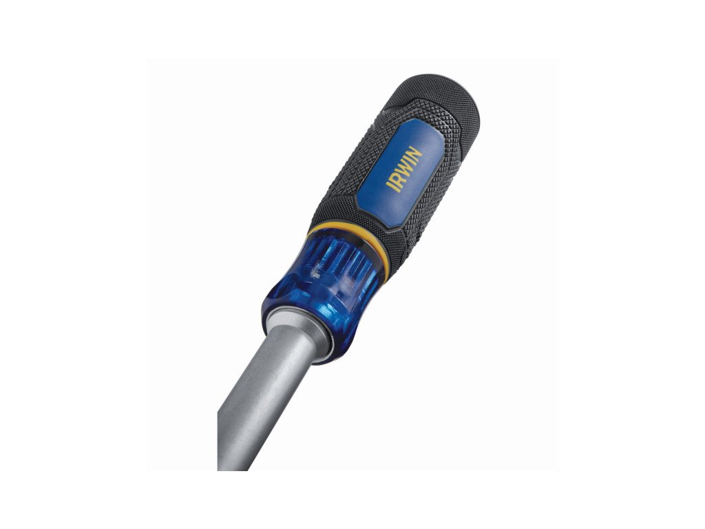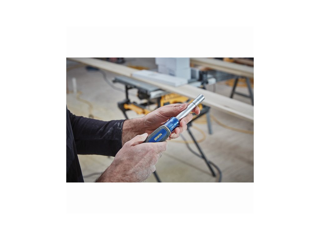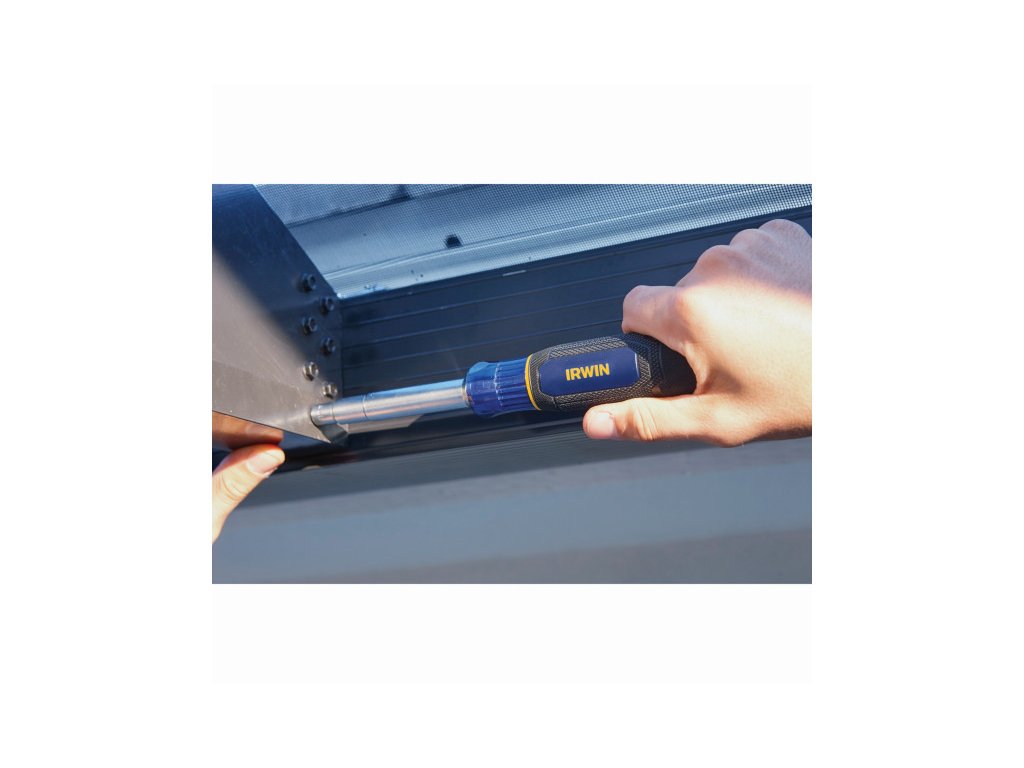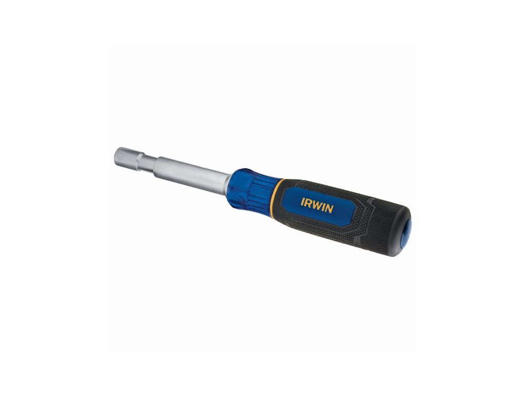 Az IRWIN® 6 az 1-ben csavarhúzó bithegy tartó növeli a munka kényelmét azáltal, hogy 6 méretet kombinál az anyák és csavarok egyetlen szerszámmal történő rögzítéséhez.