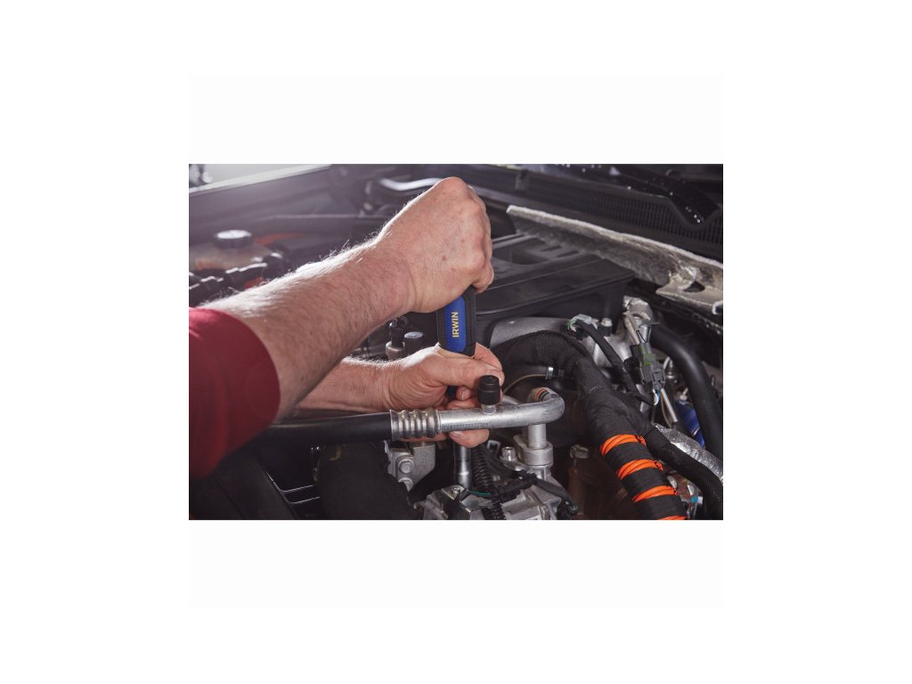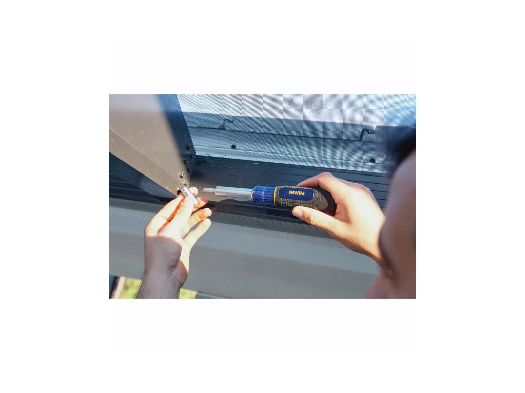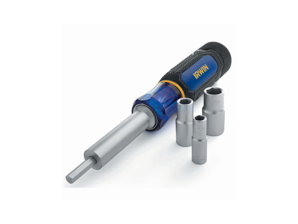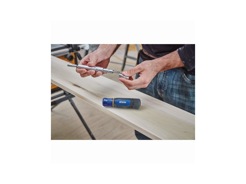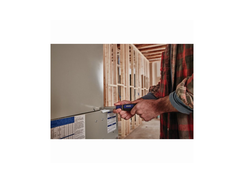 Az IRWIN® 6 az 1-ben csavarhúzó bithegy tartó növeli a munka kényelmét azáltal, hogy 6 méretet kombinál az anyák és csavarok egyetlen szerszámmal történő rögzítéséhez.