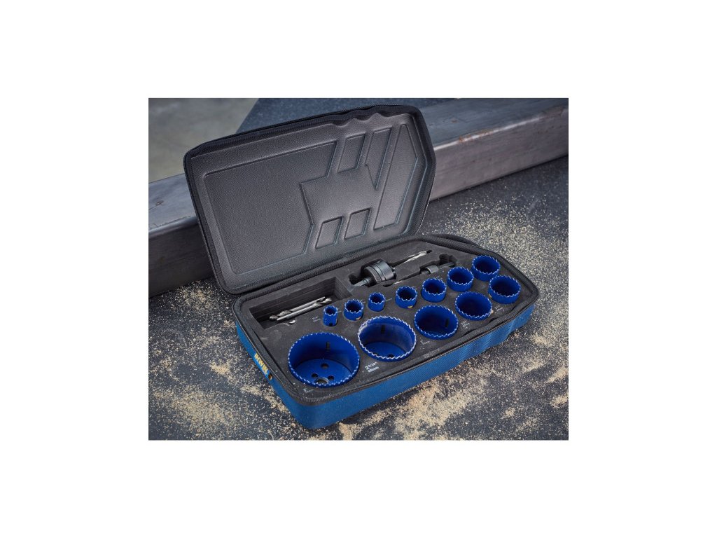 Az Irwin lyukfűrészkészletei most egyedi, tetszetős, puha dobozban kaphatók, amely egy törhetetlen zsanért és bélést tartalmaz a doboz tartalmának megóvása érdekében.