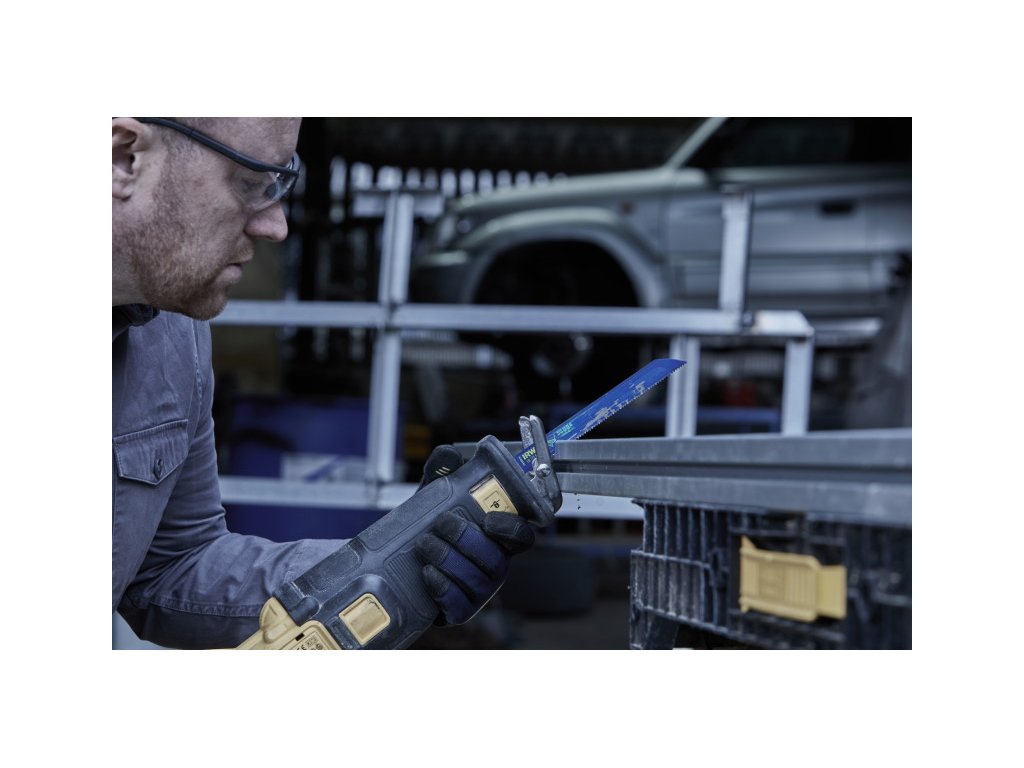 A bimetál szerkezetű ellenállóbb fűrészlap, amely anélkül hajlítható, hogy eltörne, gyorsabb vágást biztosít.