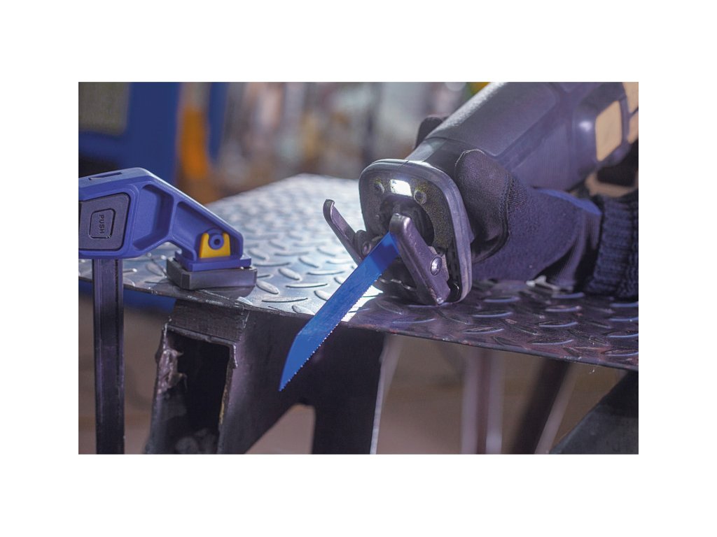 A bimetál szerkezetű ellenállóbb fűrészlap, amely anélkül hajlítható, hogy eltörne, gyorsabb vágást biztosít.