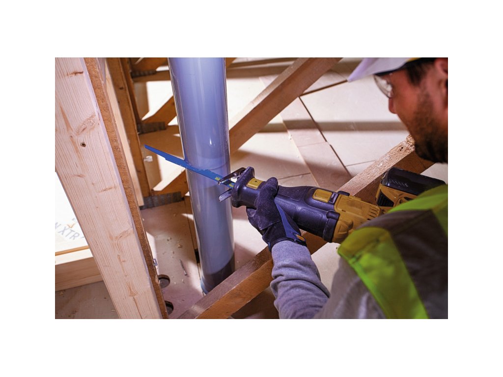 A bimetál szerkezetű ellenállóbb fűrészlap, amely anélkül hajlítható, hogy eltörne, gyorsabb vágást biztosít.