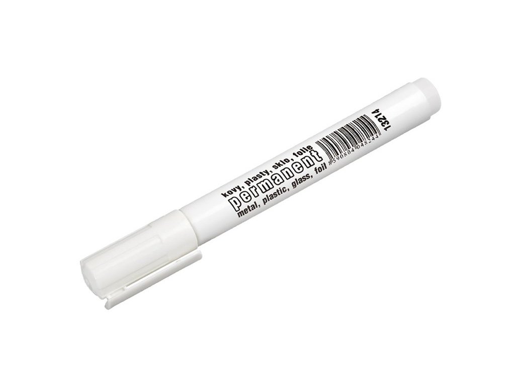 Permanent marker - marker white strong round nib - suitable for dark backgrounds - descriptions of parts, bottles, tables.., decorative purposes, etc.
