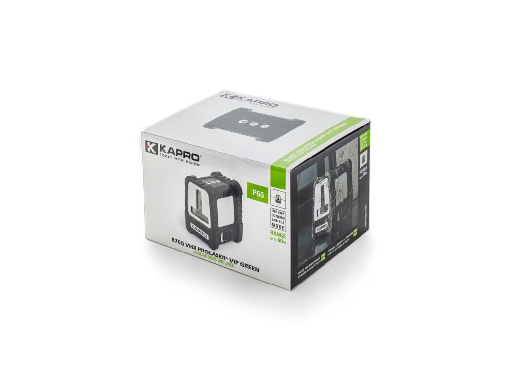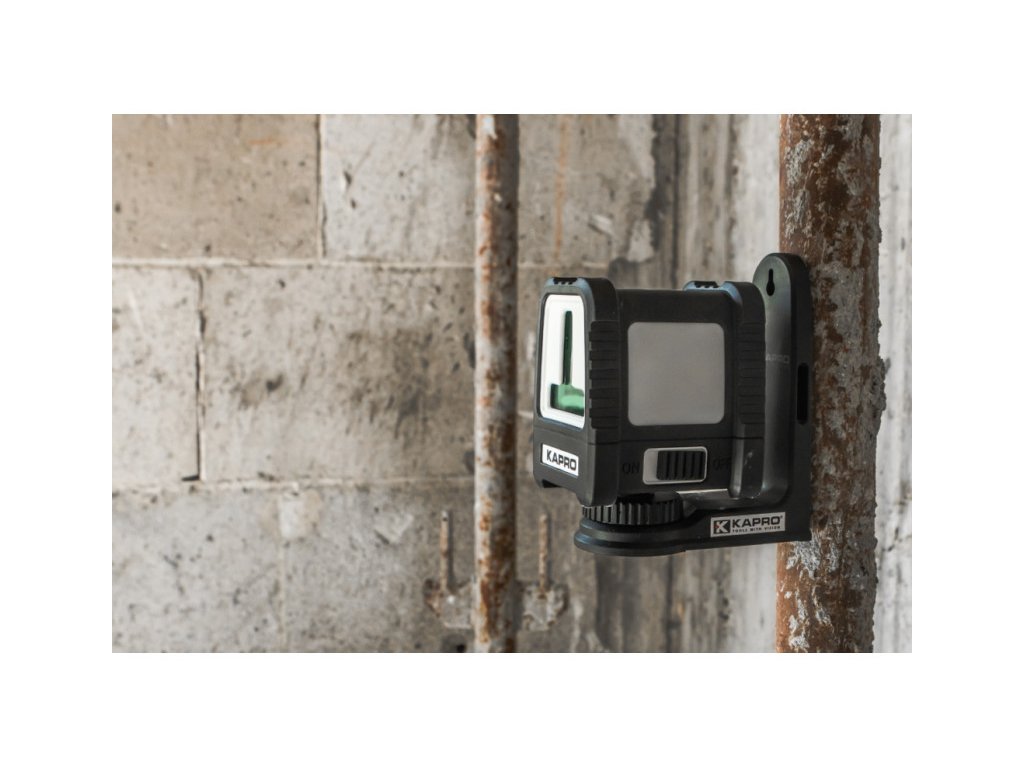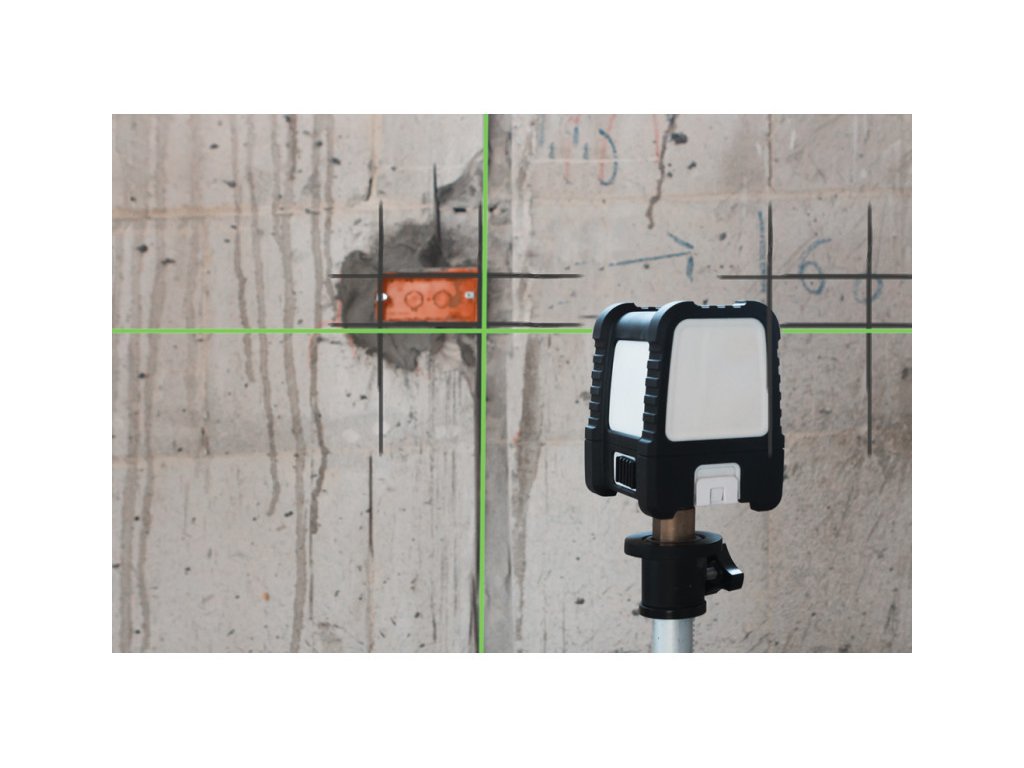Szabadon álló keresztlézer zöld sugarakkal beltéri és kültéri használatra - a zöld sugár előnye elsősorban a nyaláb hosszabb hatótávolsága és a lényegesen jobb leolvashatóság még lézerszemüveg használata nélkül is