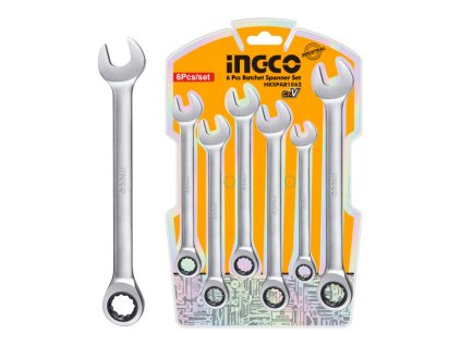 Veľkosti: 8, 10, 12, 13, 14, 17 mm Kvalitná CrMo račňa Leštená, CrV Rozsah dodávky: 6 ks račňových kľúčov, v blistri