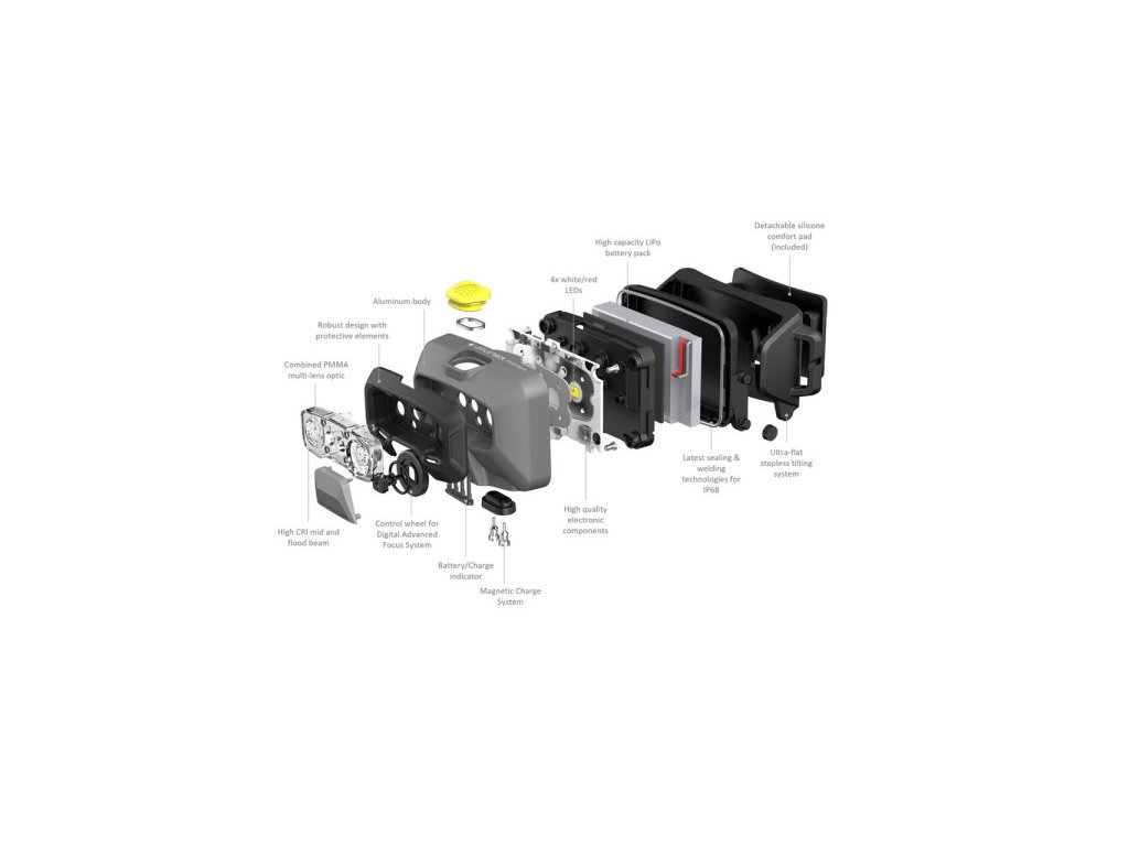 A HF6R Work vékony Ledlenser fejlámpa rendszeres ipari és kereskedelmi alkalmazásokhoz. Kiváló minőségű alumínium házzal, három fényerősséggel és piros elülső lámpával rendelkezik, ezen kívül a közeli munkavégzéshez magas a színvisszaadási indexe. A szabadalmaztatás alatt álló Digital Advanced Focus System látszólag fokozatmentes fókuszálást tesz lehetővé és intuitív módon használható a Focus Wheel segítségével. Az elülső védőelemek nagy ütésállóságot kölcsönöznek a lámpának. A nagy teljesítményű akkumulátornak köszönhetően a HF6R Work akár nyolc órán keresztül is használható közepes intenzitáson. További hasznos funkciói közé tartozik a fali tartó, valamint a sisakra való különböző rögzítési lehetőségek.