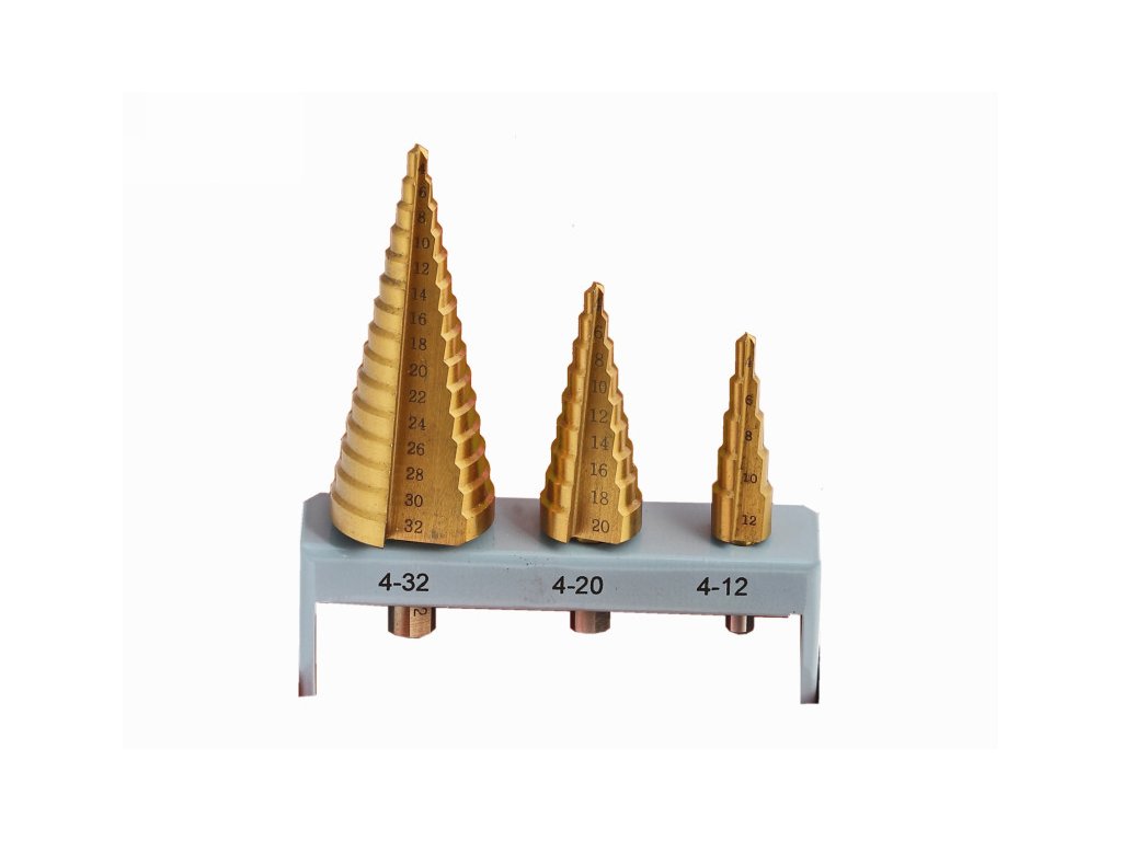 Sada stupňovitých vrtákov Tin 4-12/4-20/4-32 mm