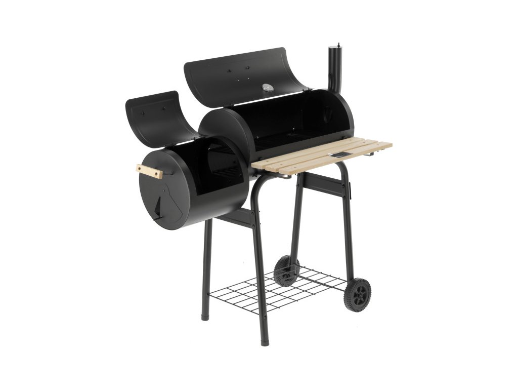 dve komory – hlavná na grilovanie a malá na prípravu a údenie.