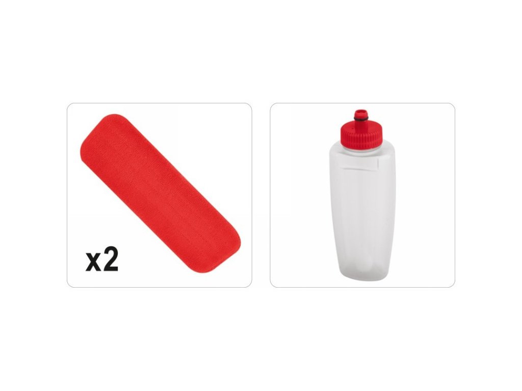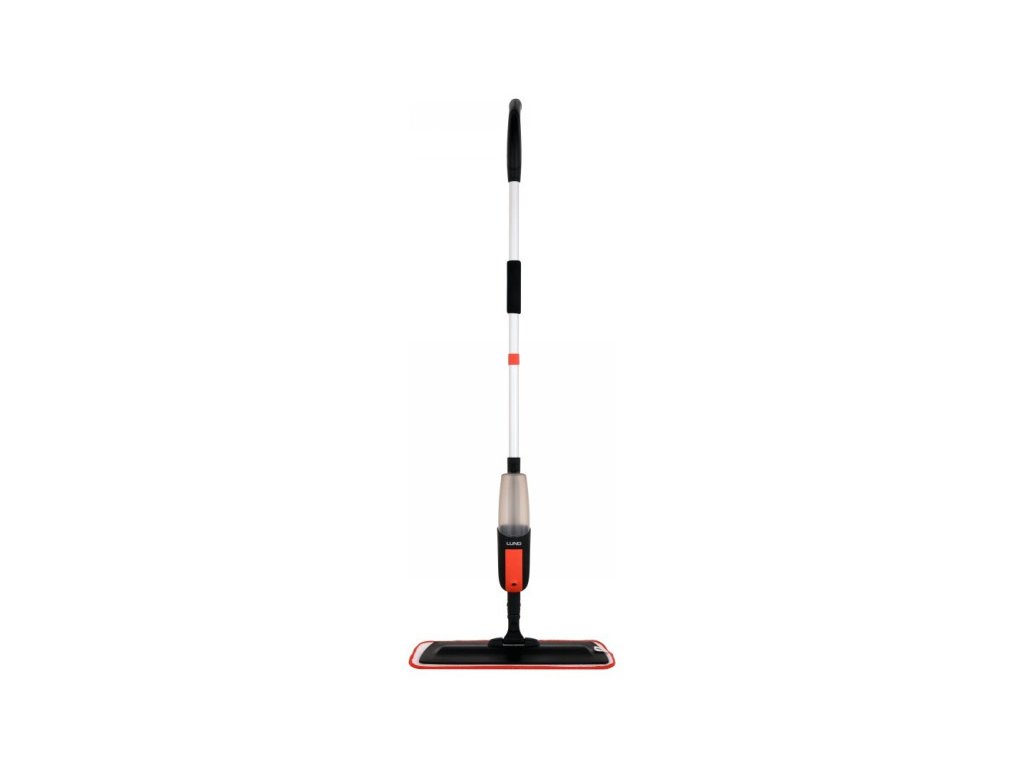 A permetezős és mikroszálas padlófelmosó mind száraz, mind nedves takarításhoz hasznos. A felmosó felett található tágas tartálynak köszönhetően munka közben lehetőség van folyadék adagolására - csak meg kell nyomni a nyélben elhelyezett gombot.