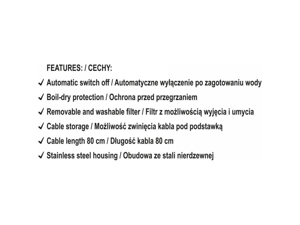 - ki/be kapcsoló gomb, automatikus kikapcsolás, amikor a víz forr
