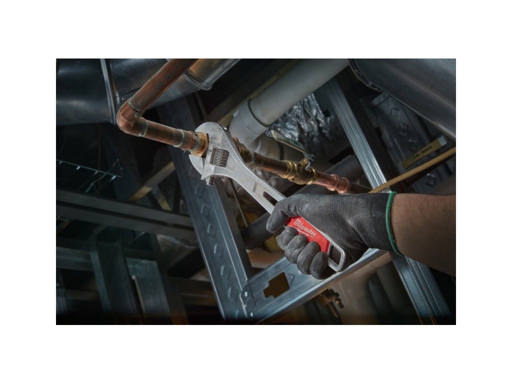- 8″ állítható csavarkulcs (48227508) extra széles 38 mm-es befogópofával a szűk helyeken való hozzáféréshez