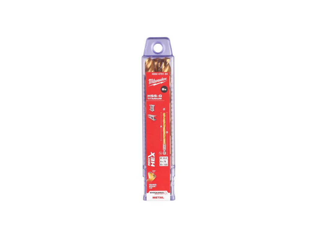 MILWAUKEE Špirálový vrták 10,0 x 120/76 mm HSS-G TiN, Red HEX - Shockwave™ (5 ks v balení)