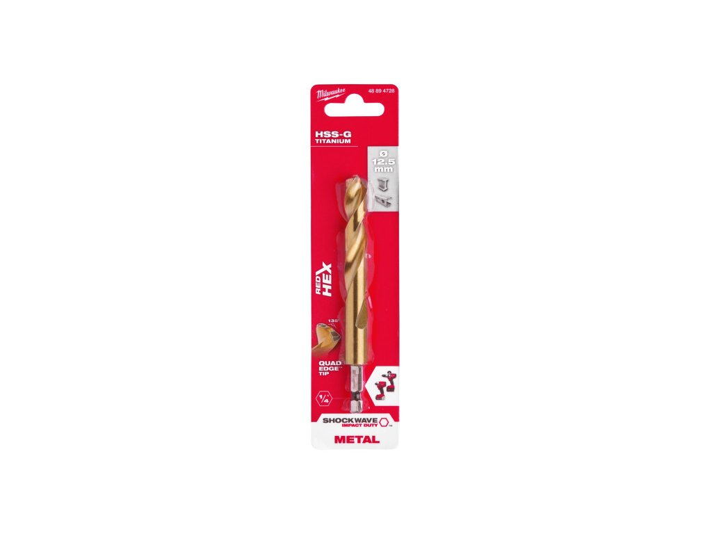 MILWAUKEE Špirálový vrták 12,5 x 128/83 mm HSS-G TiN, Red HEX - Shockwave™