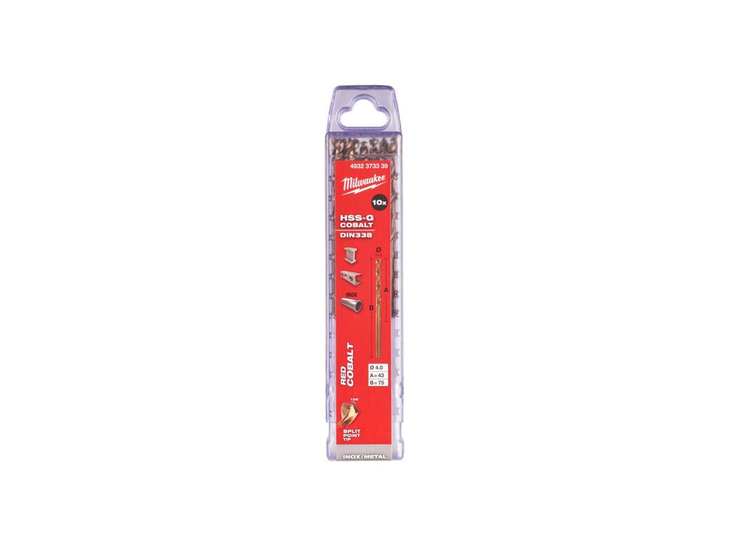 MILWAUKEE Špirálový vrták 4,0 x 75/43 mm HSS-G Co DIN 338 Red Cobalt (10 ks/bal.)