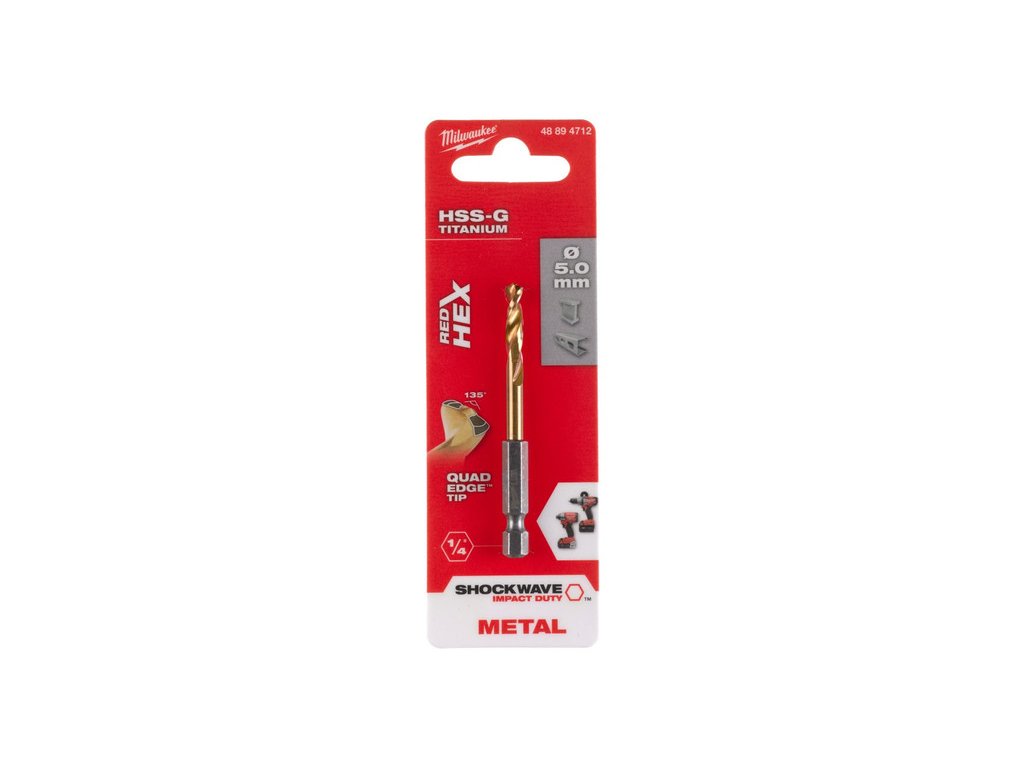 MILWAUKEE Špirálový vrták 5,0 x 80/31 mm HSS-G TiN, Red HEX - Shockwave™