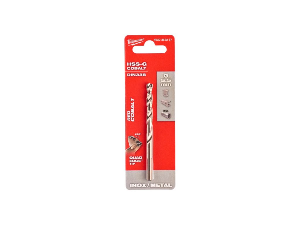 MILWAUKEE Špirálový vrták 5,5 x 93/57 mm HSS-G Co DIN 338 Red Cobalt