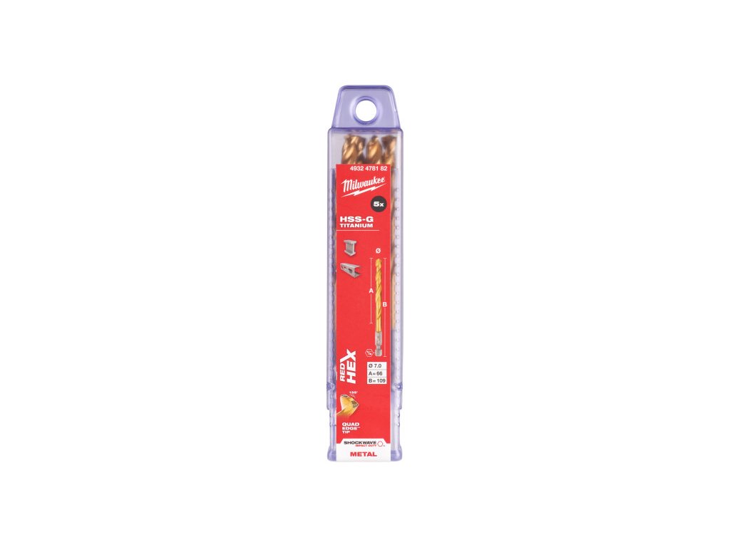 MILWAUKEE Špirálový vrták 7,0 x 109/66 mm HSS-G TiN, Red HEX - Shockwave™ (5 ks v balení)