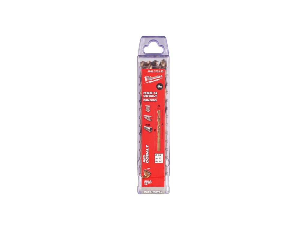 MILWAUKEE Špirálový vrták 8,0 x 117/75 mm HSS-G Co DIN 338 Red Cobalt (5 ks/bal.)
