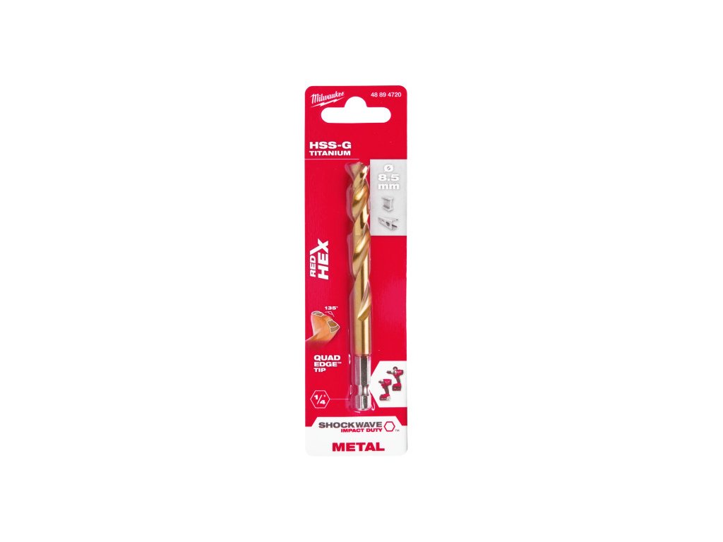 MILWAUKEE Špirálový vrták 8,5 x 114/72 mm HSS-G TiN, Red HEX - Shockwave™