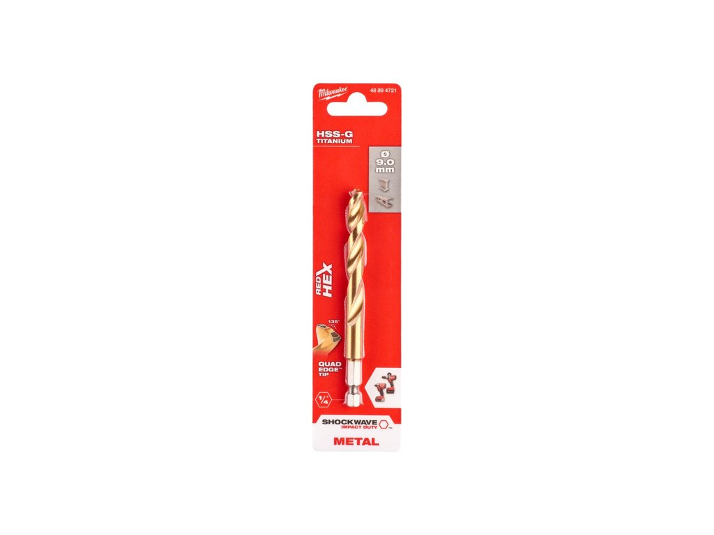 MILWAUKEE Špirálový vrták 9,0 x 117/73 mm HSS-G TiN, Red HEX - Shockwave™