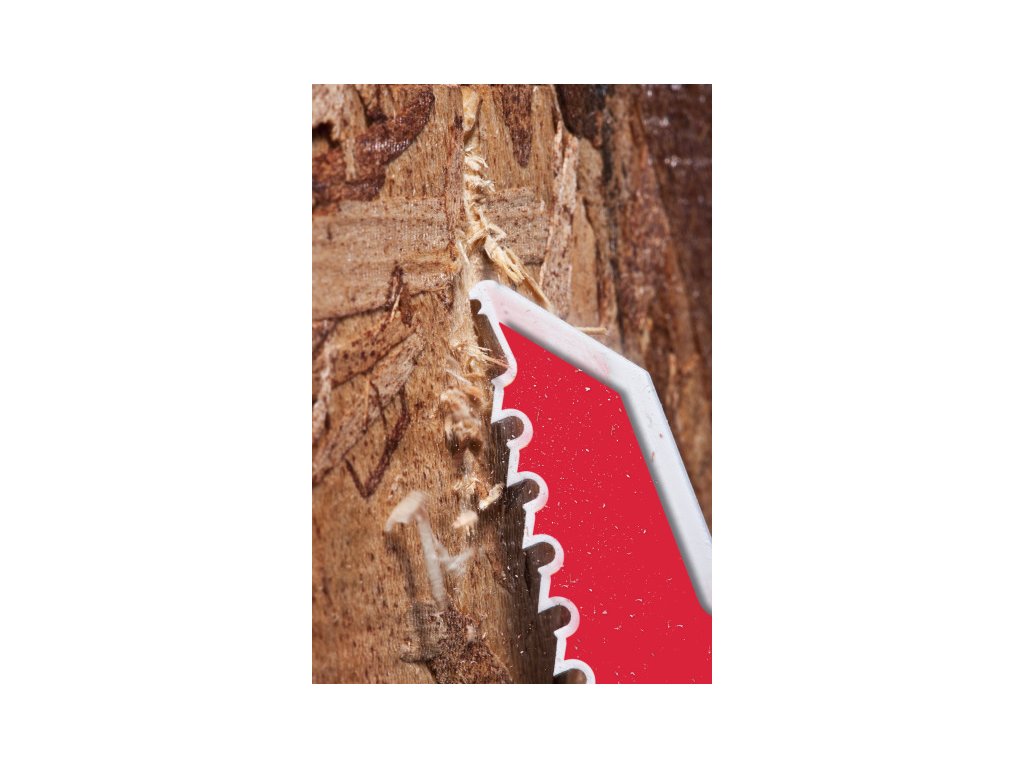 Ejtésálló: Bimetál konstrukciója következtében a fűrészlap hajlítható és rugalmas, nem törik el.