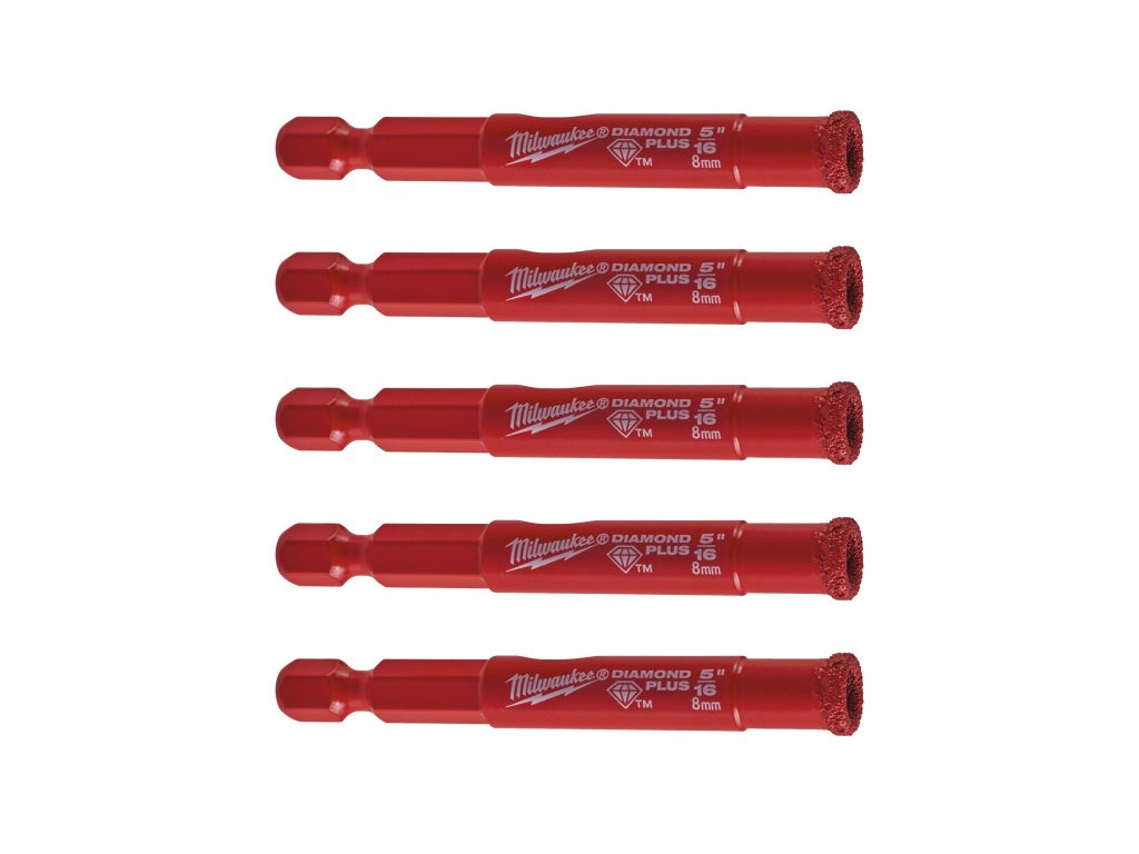 A készlet 5 darab 8 mm átmérőjű gyémántfúrót tartalmaz.