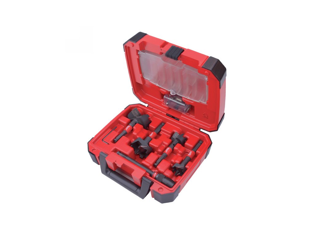 Tartalom | Tartalma: 4 SWITCHBLADE™ öntolásos fúró ⌀ 35 / 38 / 54 / 65 mm, QUIK-LOK 140 mm-es toldószár, 4 x cserélhető SWITCHBLADE™ penge (minden méretből 1), 4 x előtoló csavarorsó, 4 x csavarkészlet, 1 x imbuszkulcs |