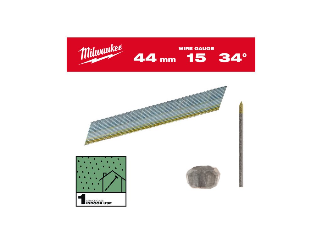 MILWAUKEE Finisérske sponky, D-hlava, pozinkované 15G 34° SC1 - 1,8 x 44 mm (2500 ks/bal)